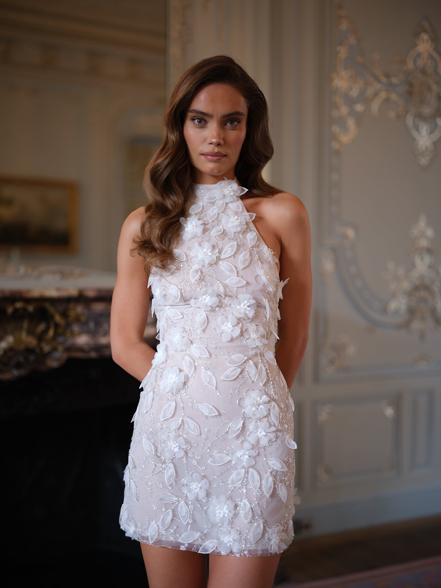 The Eloise Mini Dress is a whimsical celebration of texture and romance, designed for the bride who desires playful charm wrapped in couture artistry. Fresh, radiant, and irresistibly feminine, Eloise is a floral fantasy brought to life in a modern bridal silhouette.