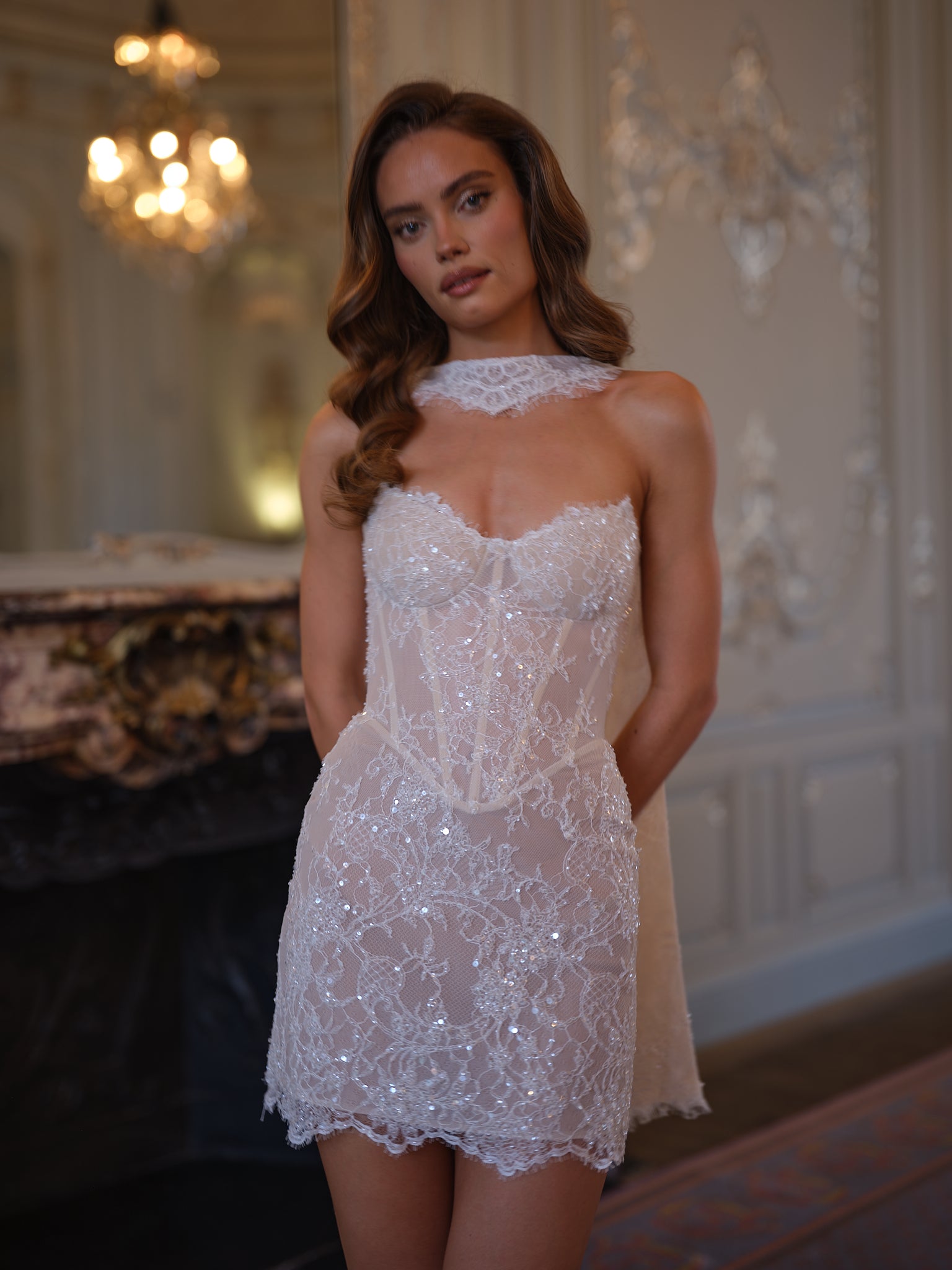 The Jolie Mini is where high-fashion energy meets bridal enchantment—sparkling, sensual, and unforgettable.